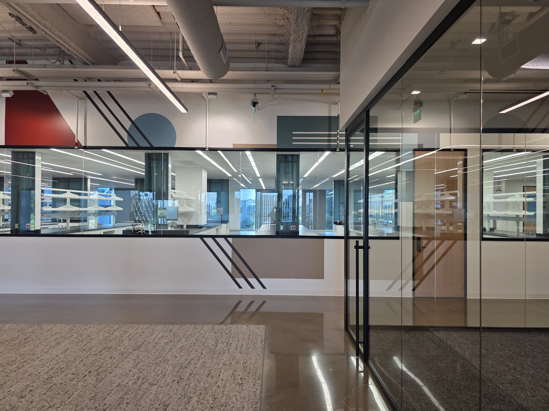 Fume hoods exist today for either a biology or chemistry function and lab support rooms are in abundance to assume tissue culture, equipment rooms (a la mass specs), microscopy, or other functions. Partial height glass walls separate the labs from the offices. The offices are fully functional with high-end offices, conference rooms, breakrooms, and open office areas. The success of this project was yet another strong collaboration with McFarlane Architects and DPR Construction.