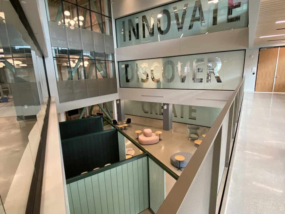 The project involved an ambitious transformation—demolishing two existing building envelopes and uniting them with a sleek new curtain wall that created a single, cohesive structure. A stunning 3-story atrium became the focal point, complemented by extensive site work, modernized MEP systems, and three full floors of state-of-the-art lab and office tenant improvements.
