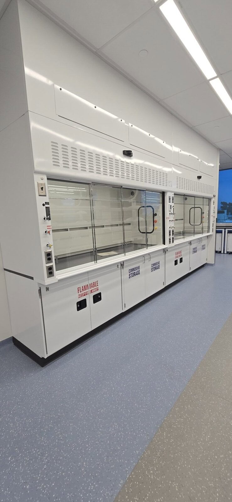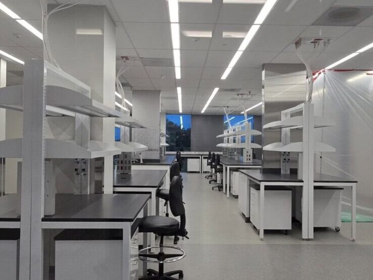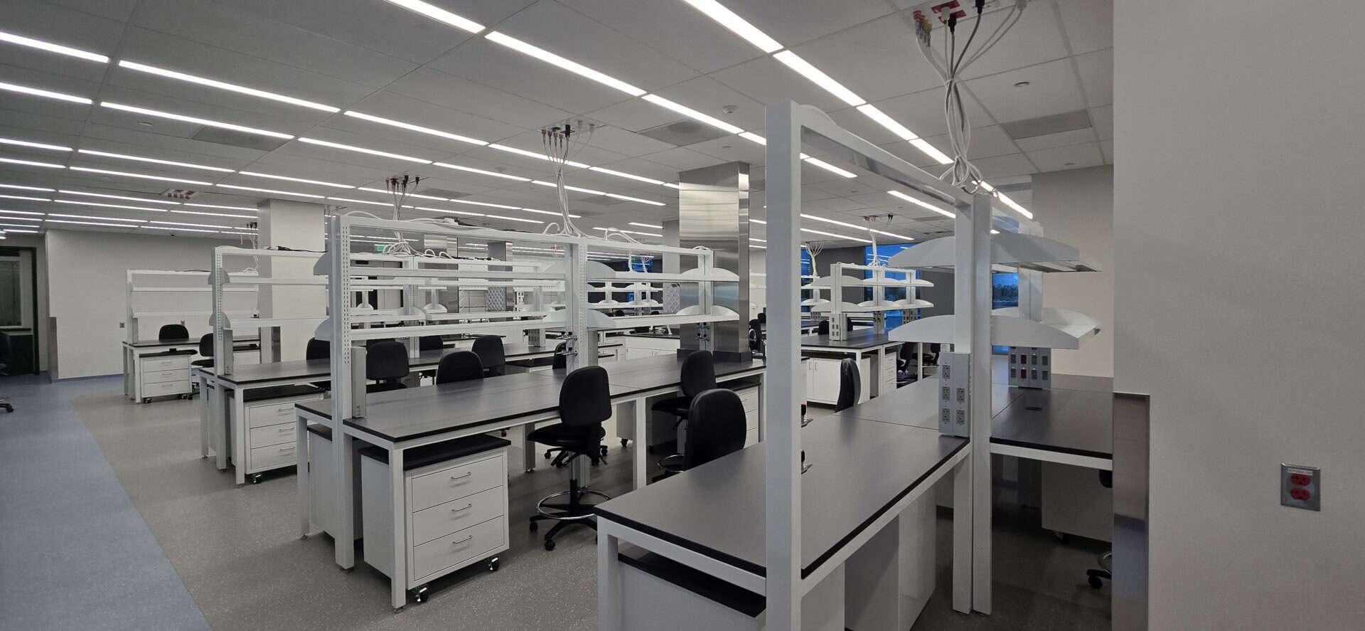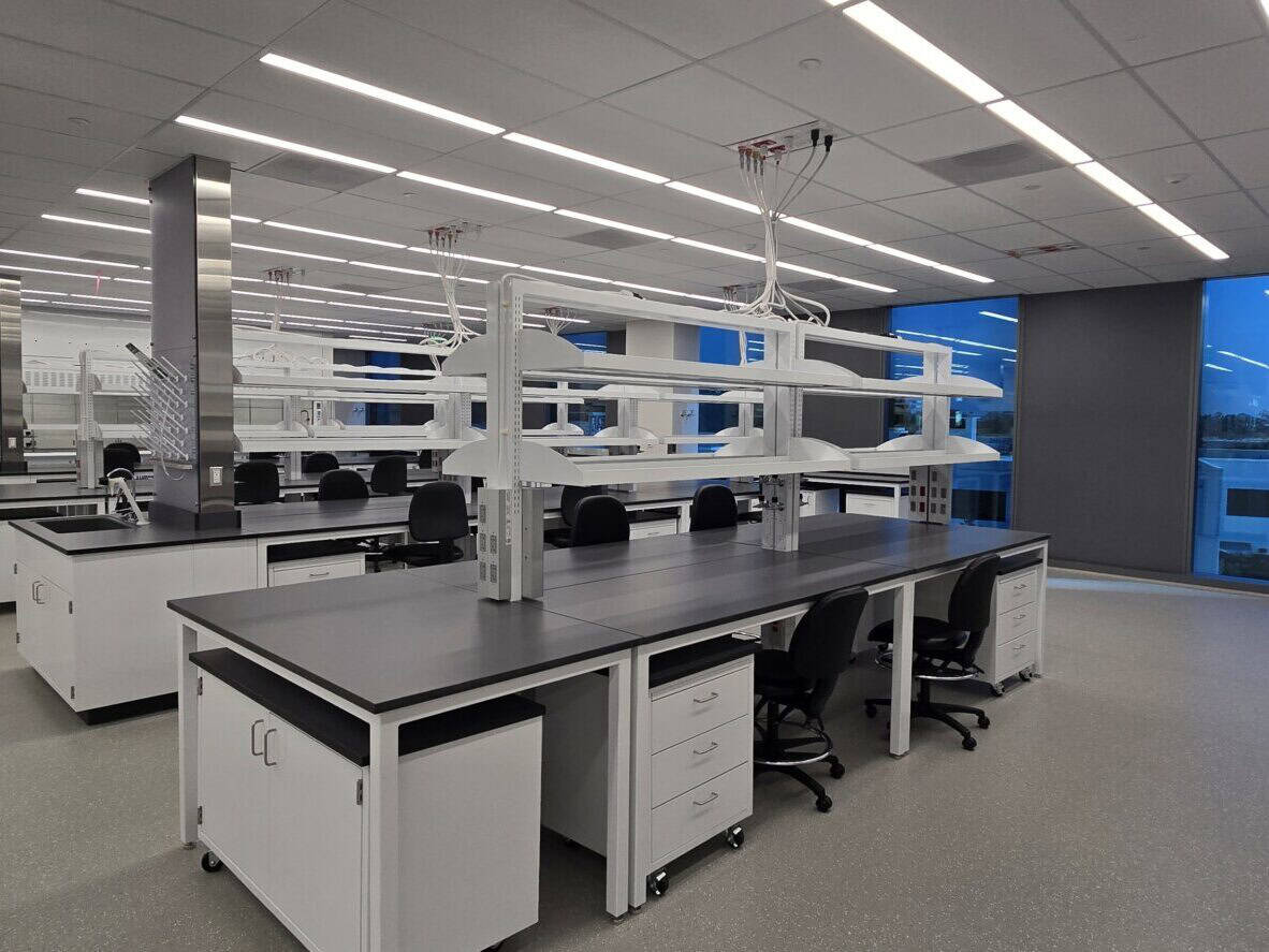 While the two suites are separated by a newly improved elevator lobby and restroom core, the spec suite is roughly 31,000 rentable square feet. It contains open lab space, lab support rooms, spacious tissue culture rooms, and a large cold room. The office area is similarly designed and separated from the labs with rated portal windows.