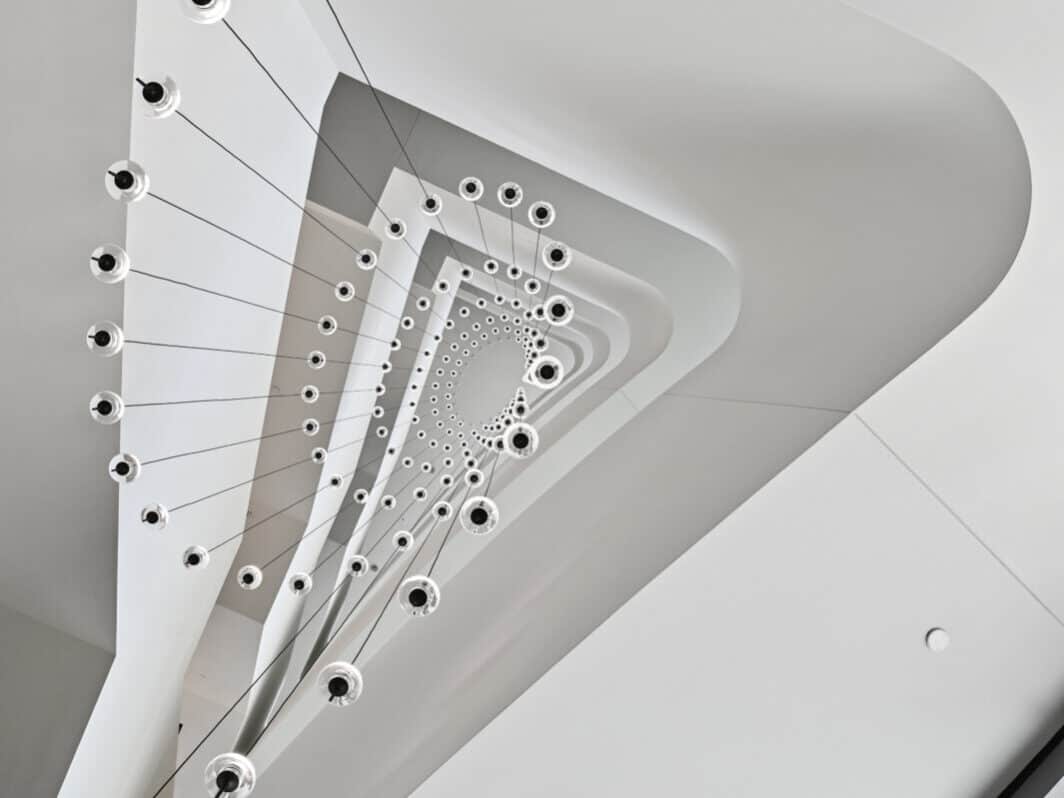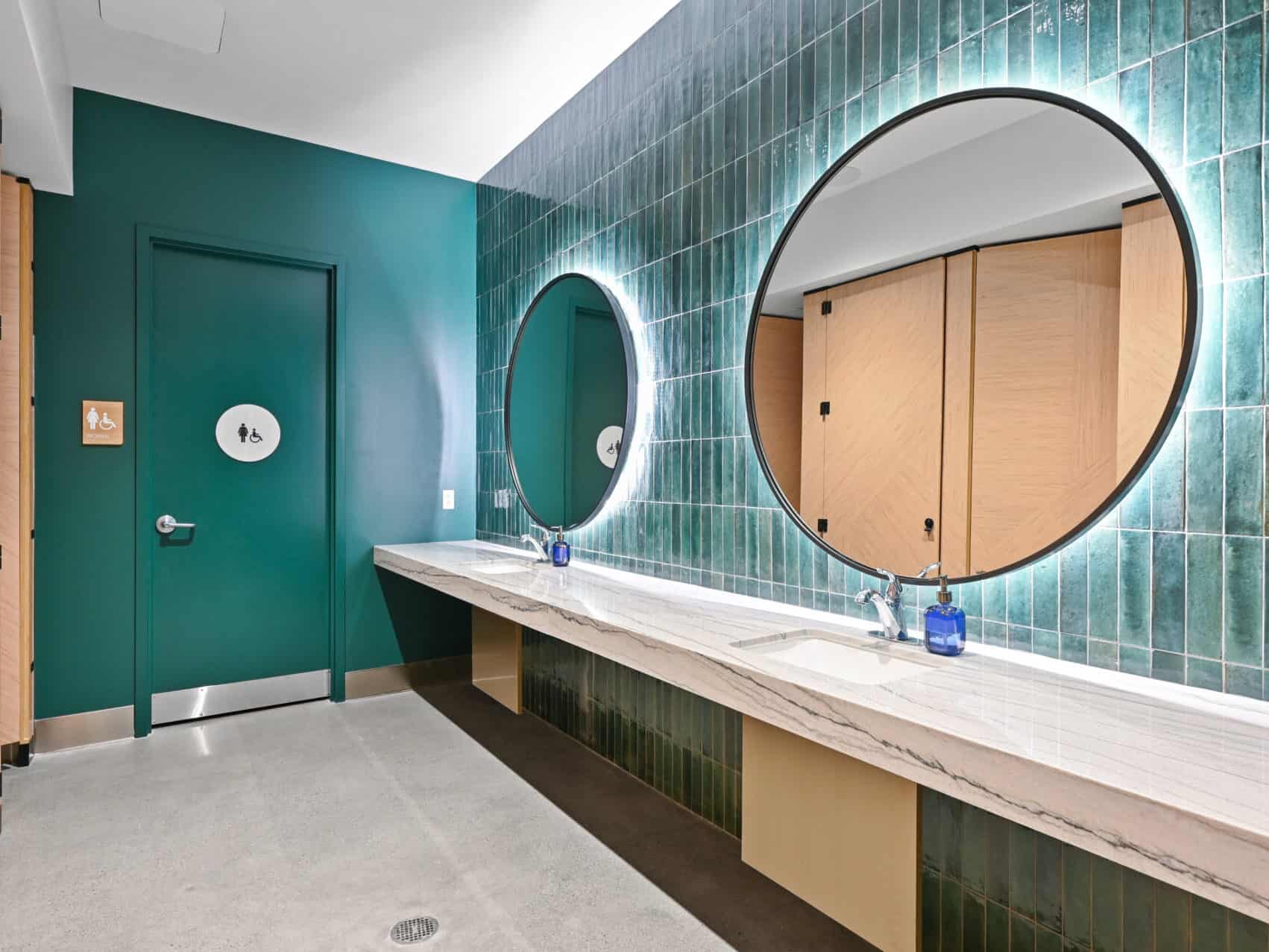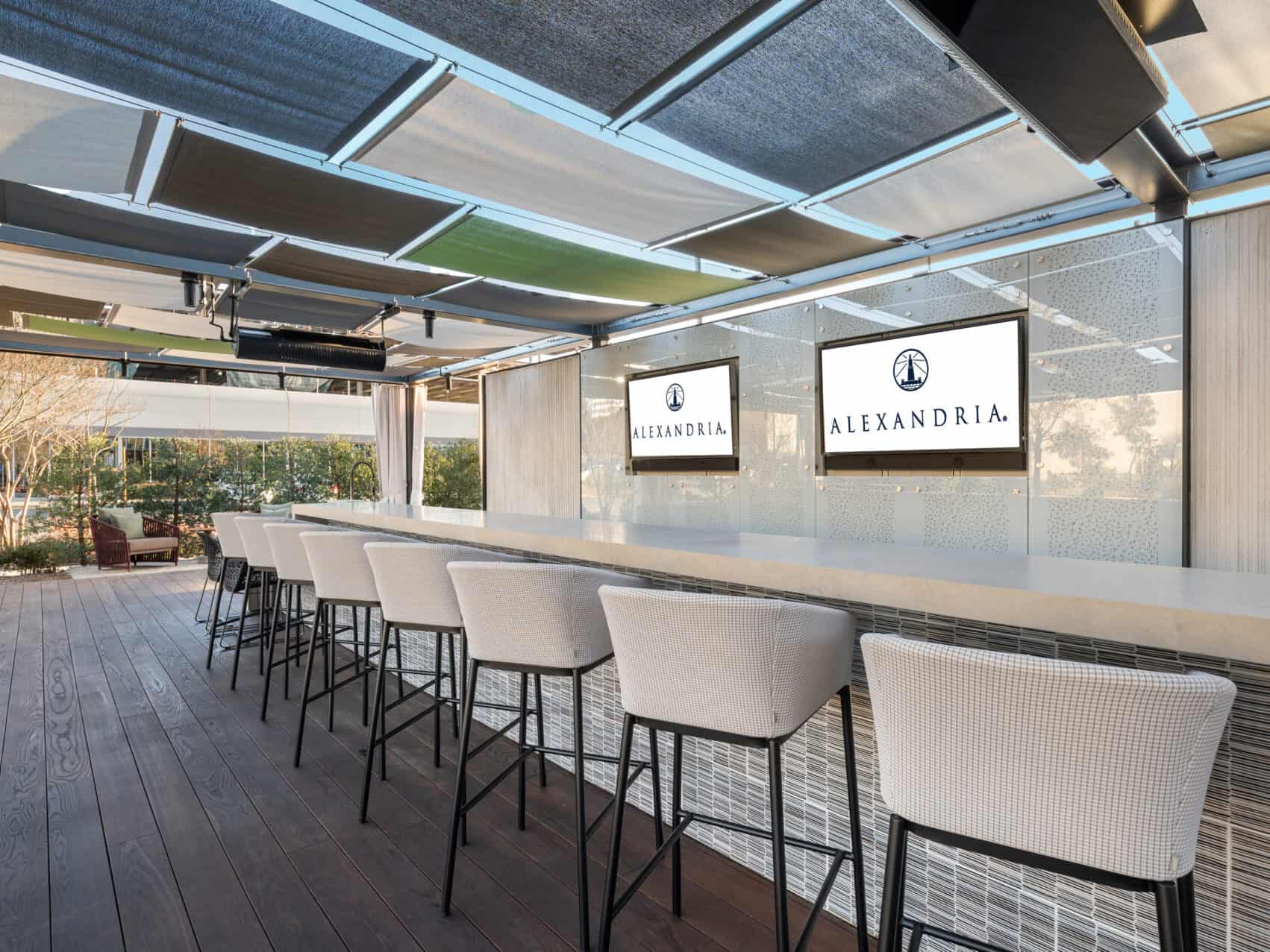 A striking architectural stairway anchors the building’s core, while two passenger and two service elevators enhance accessibility. Supported by an adjacent Central Plant and featuring a docking system for efficient deliveries, the facility is engineered for both sustainability and performance, meeting LEED standards. Beyond functionality, the project is nestled within Alexandria’s Tech Center Campus, offering access to retail, dining, fitness centers, and daycare services.